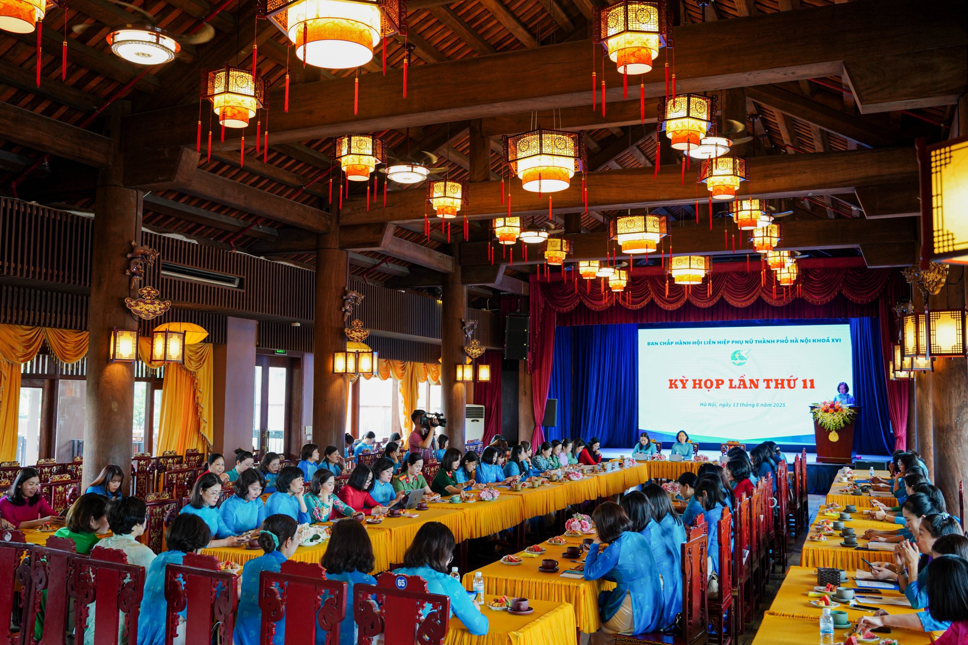 Kiến trúc phong cách cung đình Việt Nam cổ xưa, ấm cúng và trang nhã. Hội trường rộng 300m vuông, lối đi ở giữa được trải thảm đỏ tái hiện không gian cung đình.