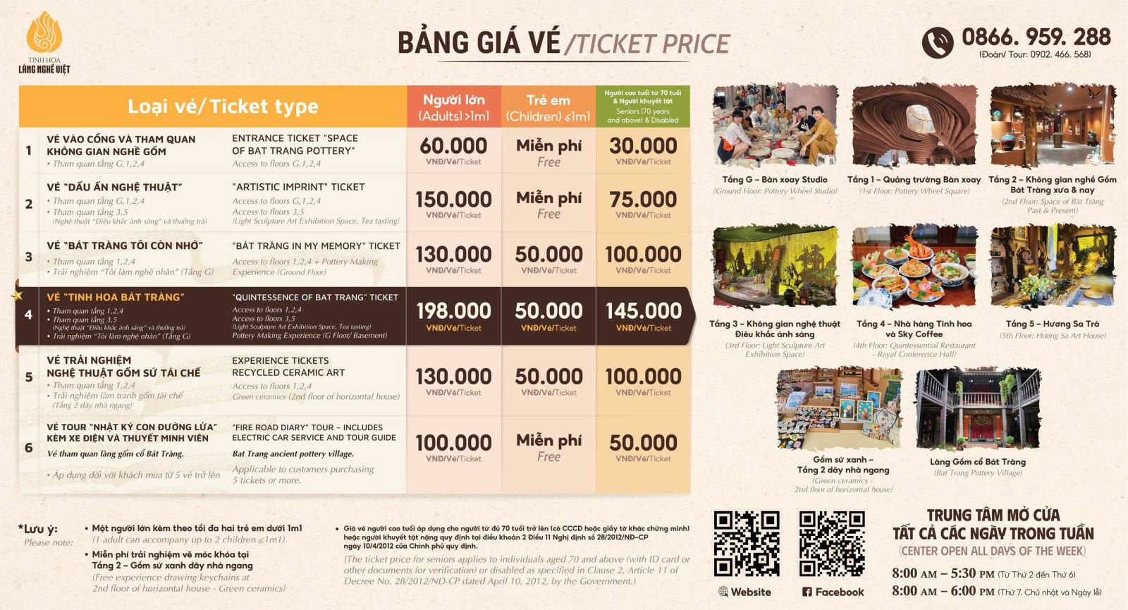 CẬP NHẬT BẢNG GIÁ VÉ THAM QUAN/ TRẢI NGHIỆM TRUNG TÂM TINH HOA LÀNG NGHỀ VIỆT NĂM 2026